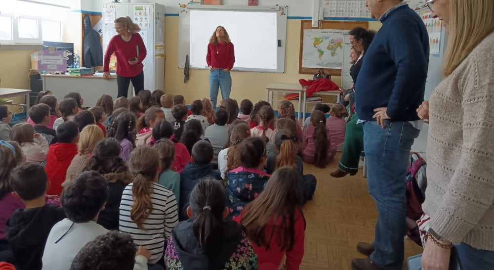 Os alunos do 3.º e 4.º ano da EB Srª da Glória, participaram numa sessão de Contos sobre o 25 de Abril, dinamizada pela contadora de histórias Bru Junça.