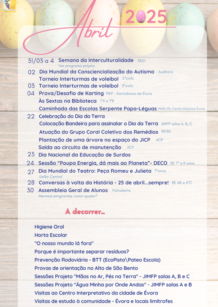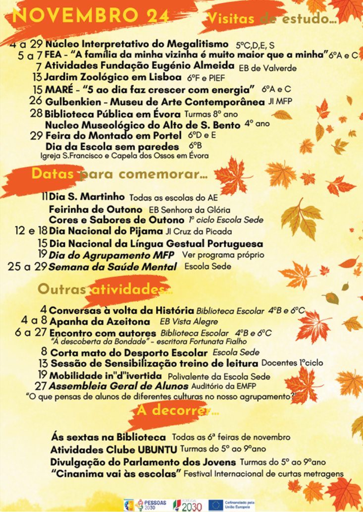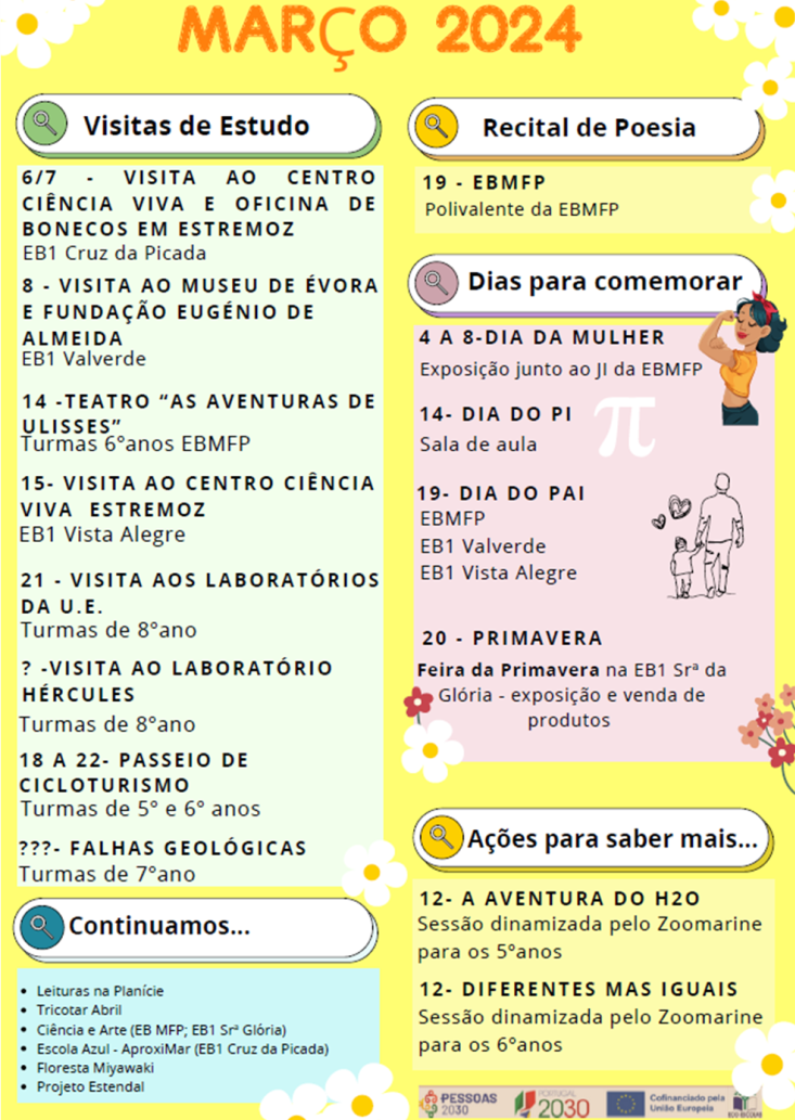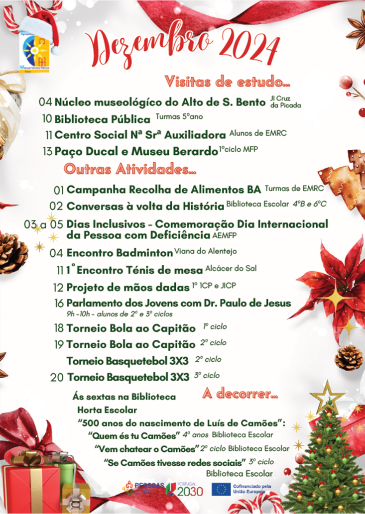 "500 anos do nascimento de Luís de Camões":Quem és tu Camões? / 4.º Anos - Biblioteca Escolar; Vem chatear o Camões / 2.º Ciclo - Biblioteca Escolar; Se Camões tivesse redes sociais / 3.º Ciclo - Biblioteca Escolar.