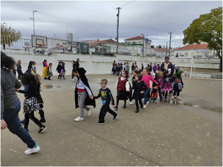 A comemoração incluiu um animado desfile, onde os alunos mostraram as suas fantasias mais criativas e assustadoras.