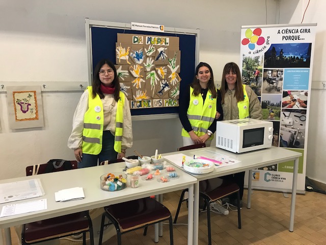 Seguidamente houve uma apresentação de projetos e dinamizações de atividades em que o nosso clube “A Ciência Gira” participou com as alunas Joana Alves do 7.º C e Raquel Costa do 8.º C.