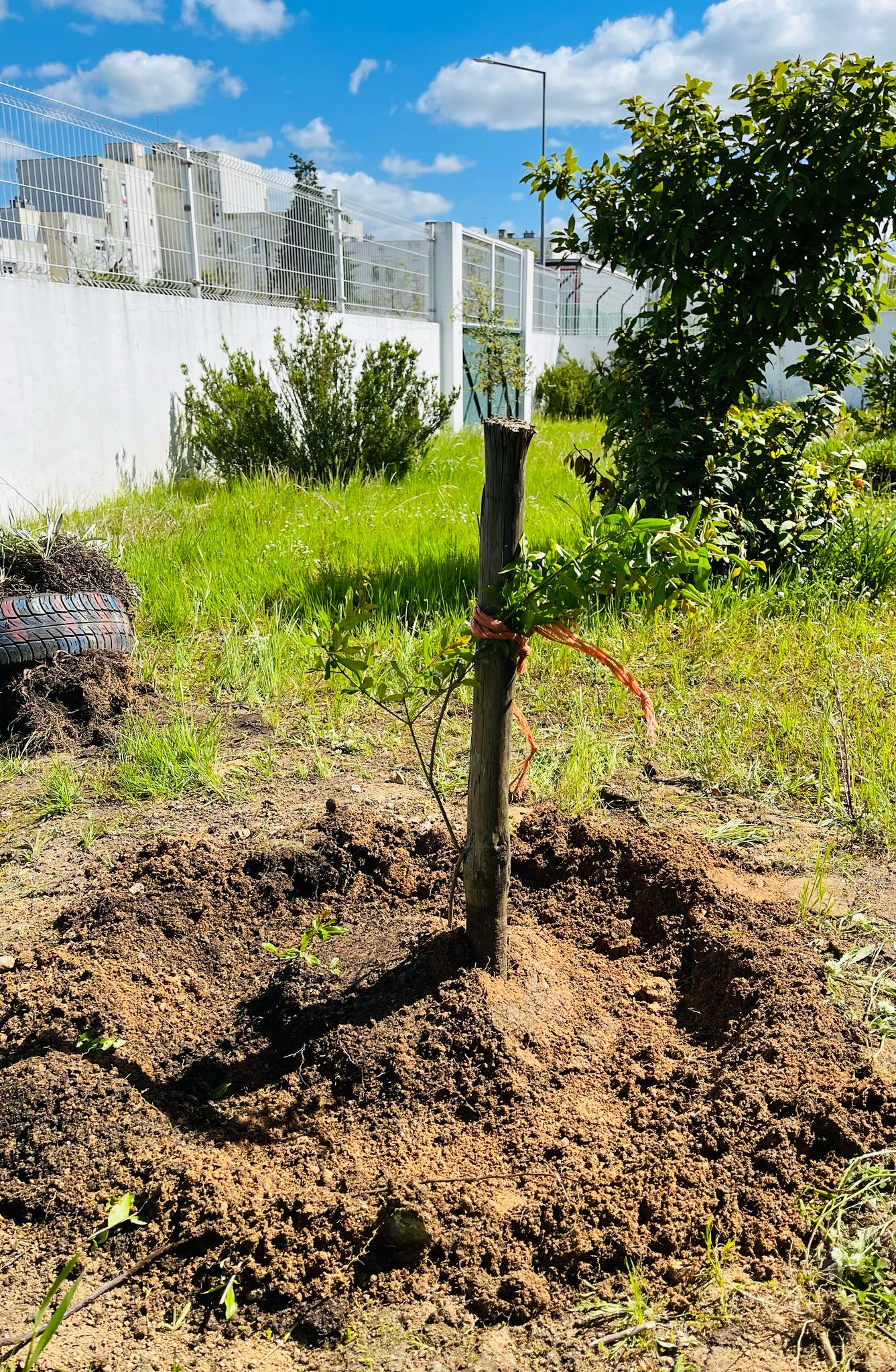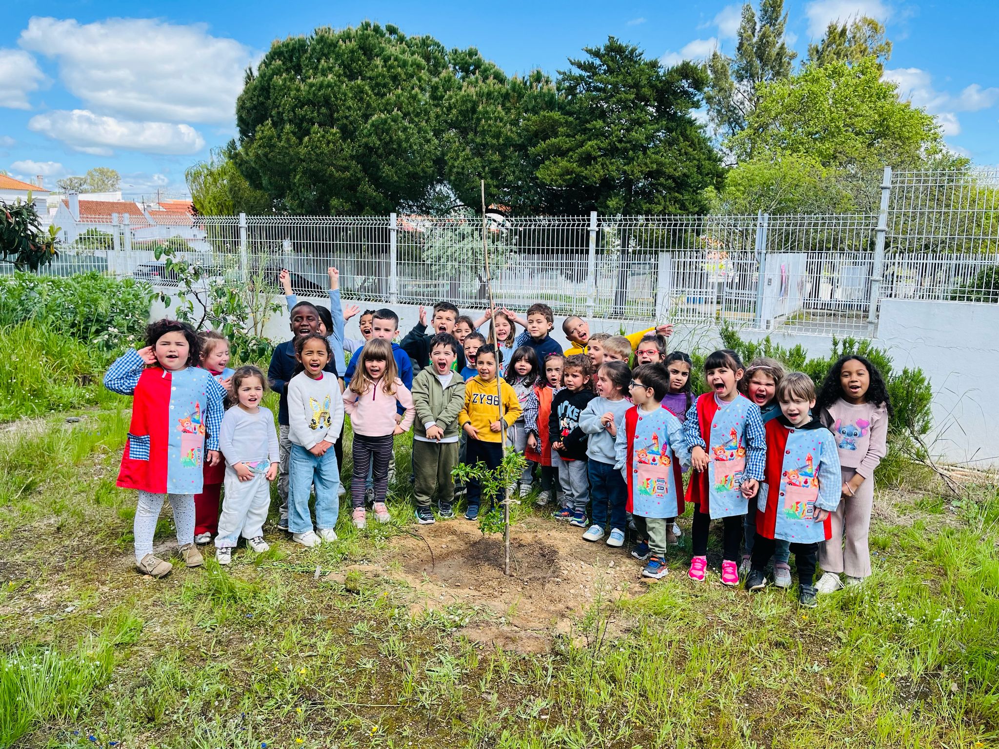 No período da tarde plantaram uma romãzeira no espaço exterior, junto à horta escolar.