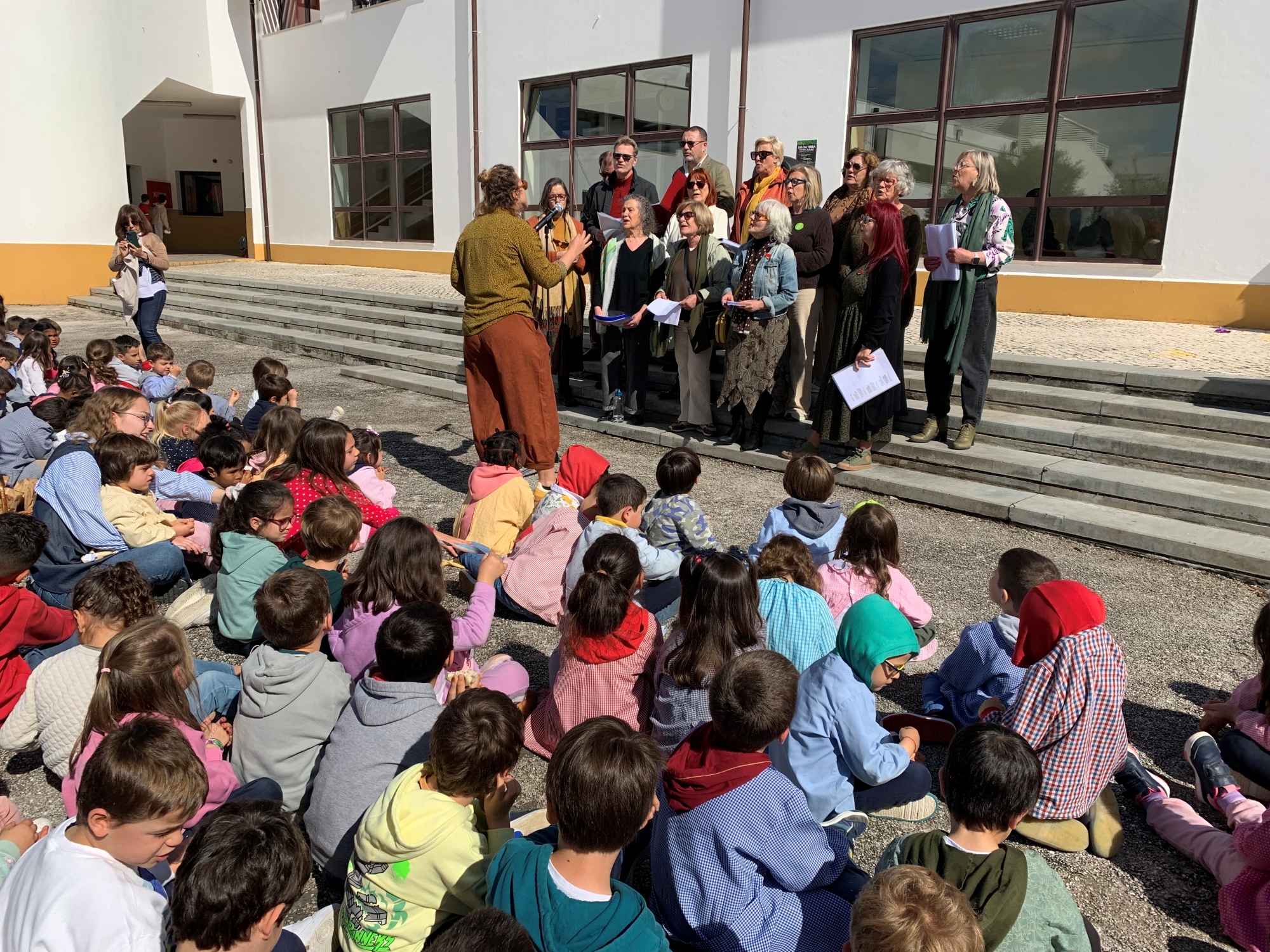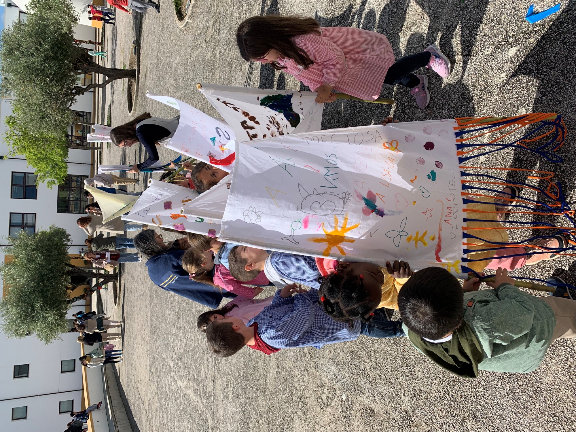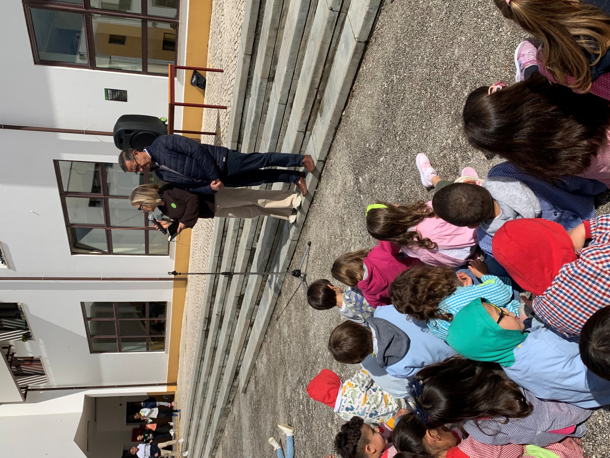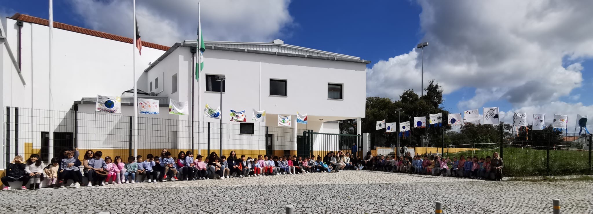 Seguiu-se o descerrar do painel ilustrativo, executado pelas crianças do jardim de infância da escola sede, um momento musical de Cante pelo Coro coletivo dos Remédios e a colocação de bandeiras realizadas no projeto “Pés na Terra, mãos no ar” com participação dos Encarregados de Educação e em articulação com o 1. Ciclo”.