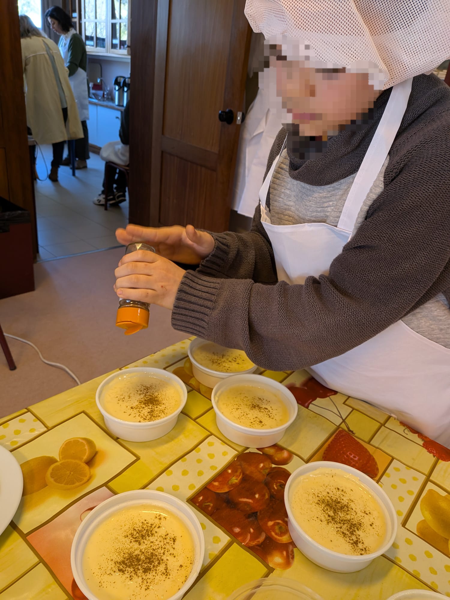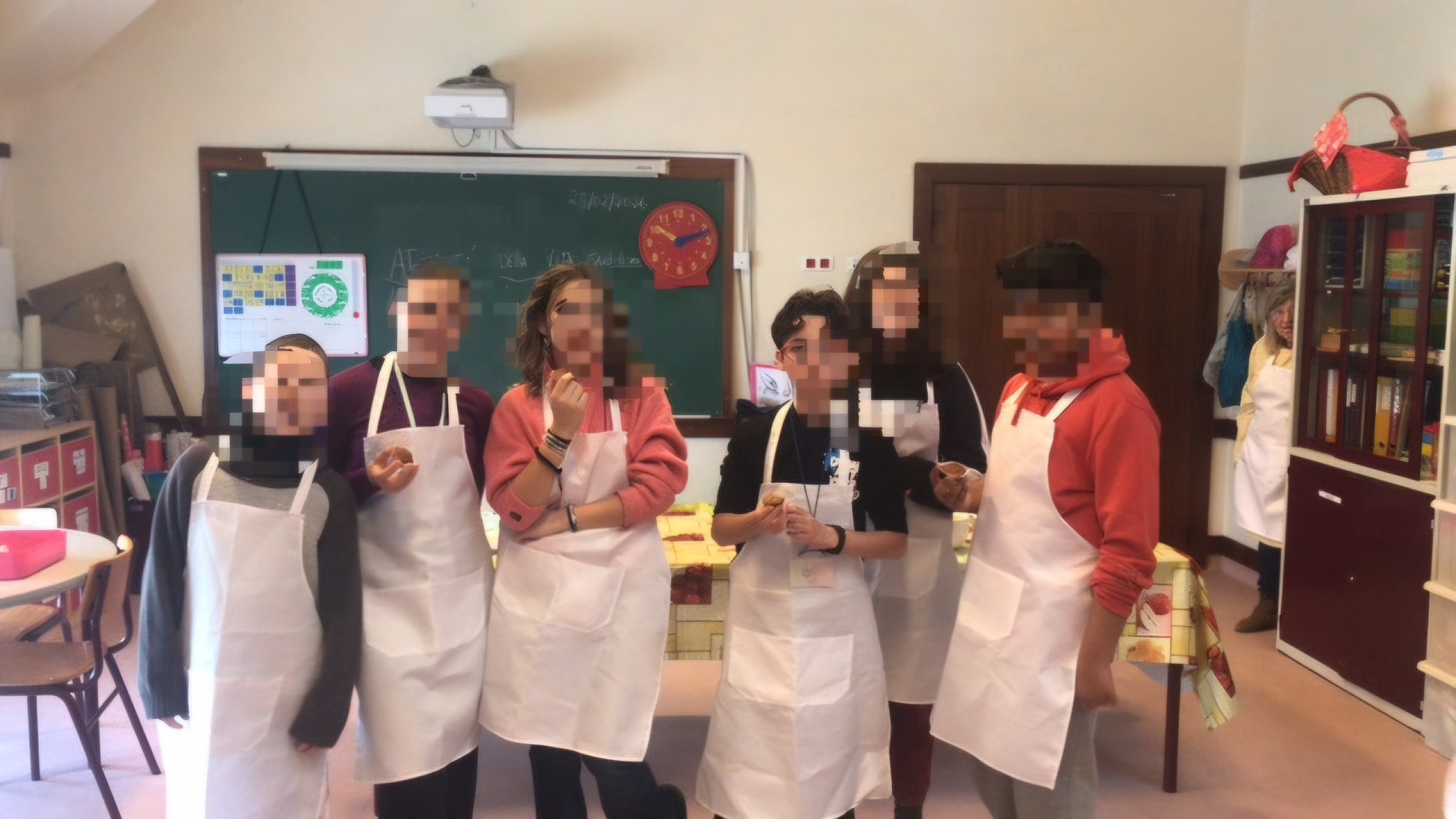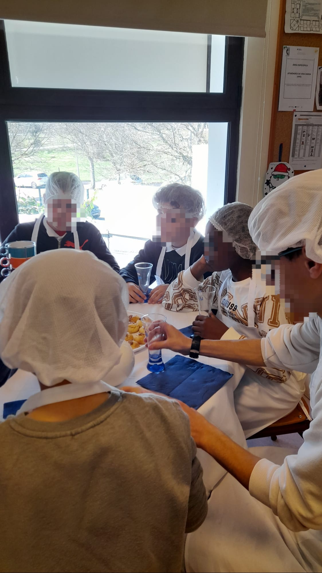 Durante a visita, os alunos de AVD partilharam com os colegas italianos a preparação de uma receita tradicional da região de Évora — as queijadinhas de requeijão — ensinando, passo a passo, a confeção deste doce típico. Os alunos italianos mostraram-se muito entusiasmados por “pôr as mãos na massa” e participar ativamente na elaboração de diferentes receitas, tendo depois apreciado e saboreado, também a sopa e muffins de cogumelos e espinafres, provaram ainda biscoitos e arroz doce, num agradável momento de convívio acompanhado por chá e sumo. As receitas de culinária foram também partilhadas por escrito, em português e em italiano, promovendo a valorização das duas línguas e culturas.