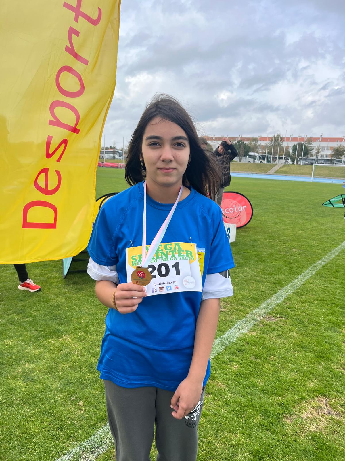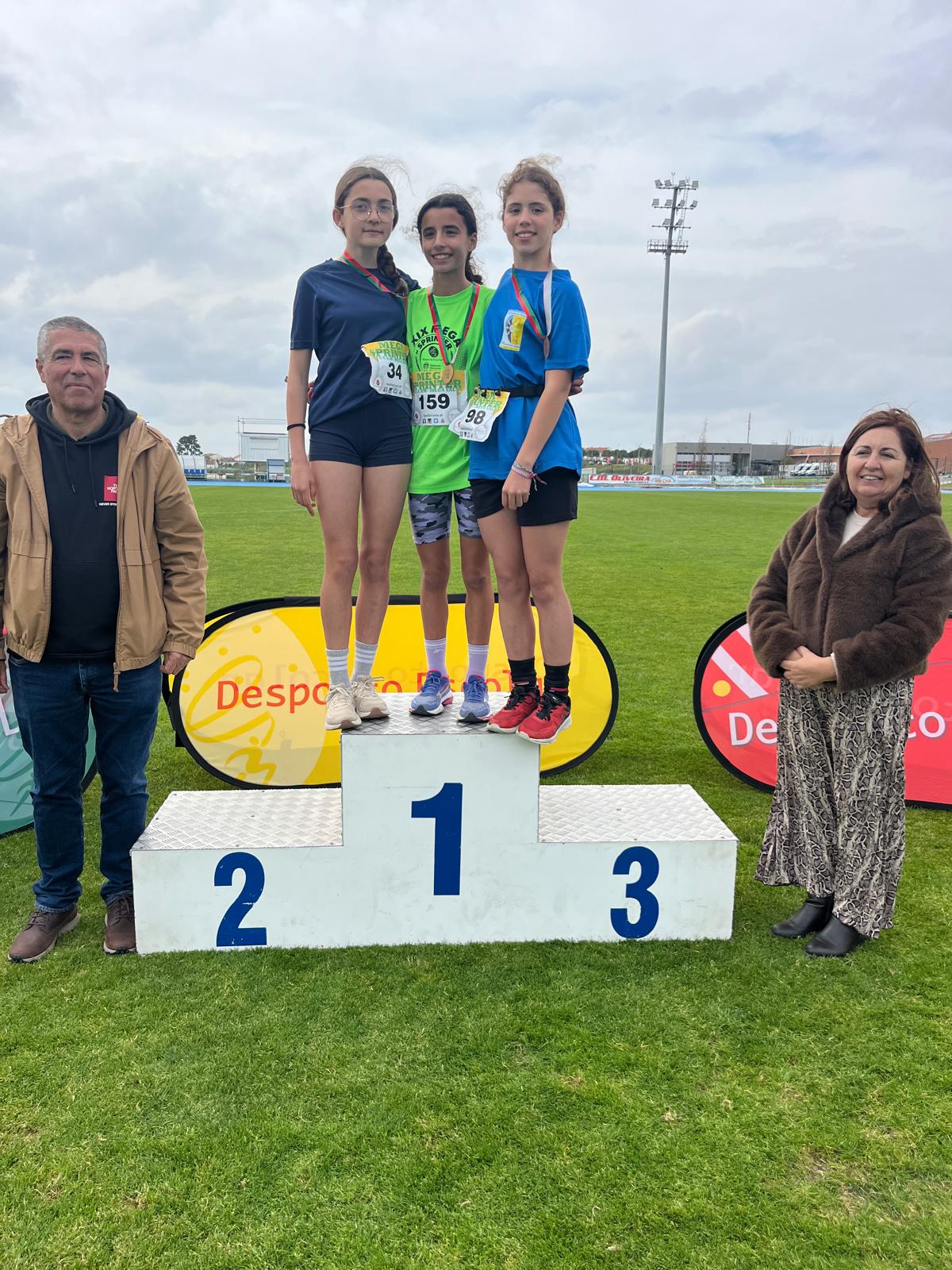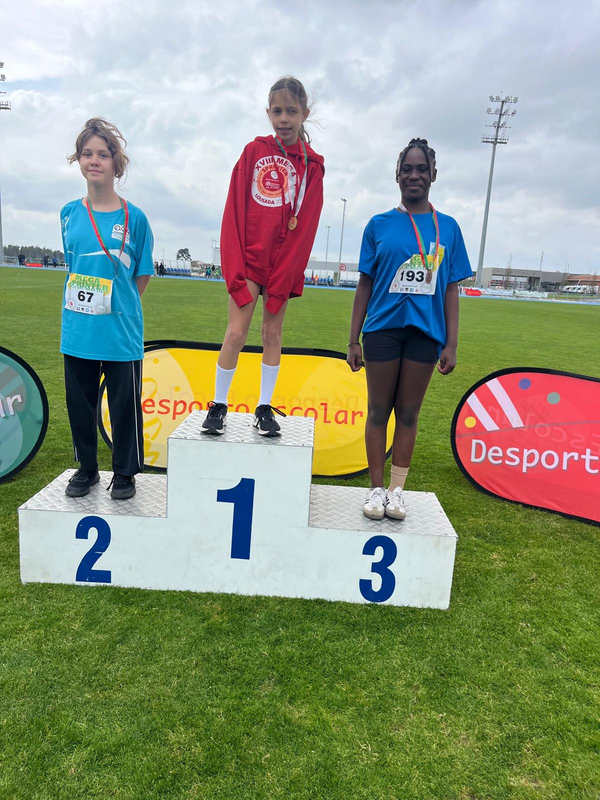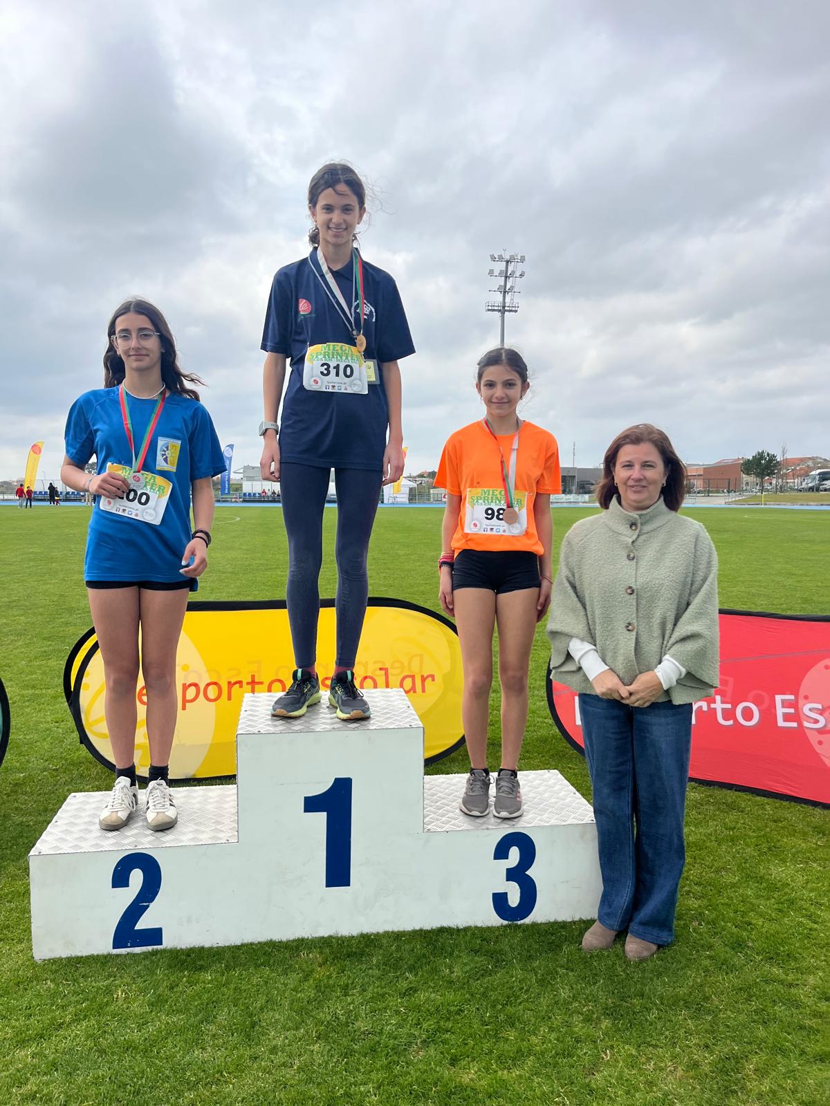 Damos os parabéns às seguintes alunas que subiram ao pódio: Beatriz Caro - 1.º lugar do lançamento do vortex; Matilde Coelho - 2.º lugar da prova de velocidade; Tiana Lopes - 3.º lugar da prova de velocidade; Luísa Rodrigues - 2.º lugar da prova do Km.